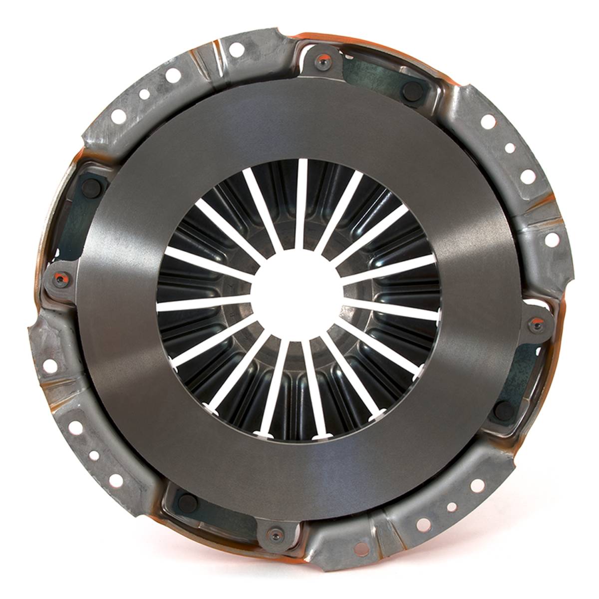 The Centerforce ® Dual Friction ® Clutch Series is a performance matched pressure plate & disc combination featuring the patented Centerforce centrifugal weight system (where applicable) and specialized machining processes to provide a performance clutch that offers exceptional street characteristics, while offering outstanding holding-capacity and durability. Furthermore, the Centerforce Dual Friction disc has an organic full facing on one side for longevity and an organic segmented facing on the other side providing increased holding capacity. Some applications have the organic segmented facings of both sides.