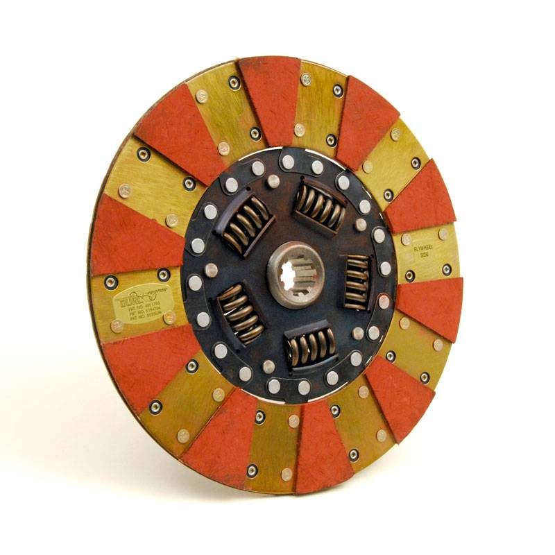 The Centerforce ® Dual Friction ® Disc Series uses a single disc with patented dual friction technology by distributing pressure plate clamp force evenly over a 360-degree friction-facing on one side of the clutch disc, while the opposing side uses a segmented friction-facing to concentrate clamping pressure and increase clutch holding-capacity. These discs are made for Centerforce Dual Friction pressure plates.